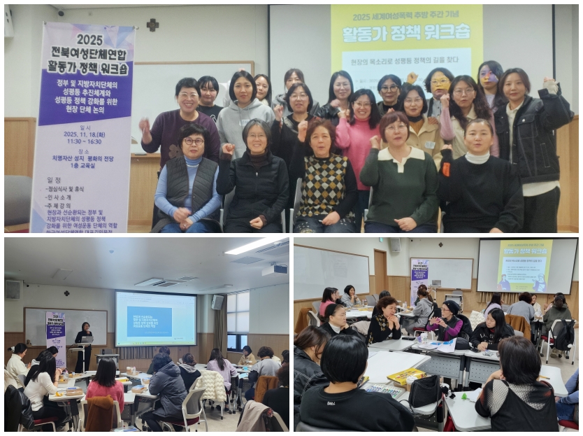 전북여성단체연합 <여성인권투어 및 활동가 정책워크숍> 페이지 정보 작성자 전북여성인권지원센터 댓글 0건 조회 9회 작성일 25-12-01 18:14 본문 여성인권투어 및 활동가 정책워크숍 목록 다음글세계여성폭력추방주간 반성매매 캠페인 25.12.01 댓글 0 댓글목록 등록된 댓글이 없습니다.